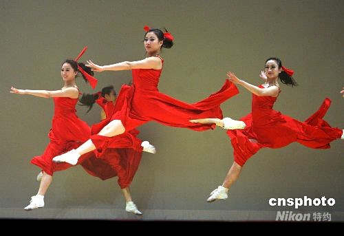 五月一日晚,香港各界青少年迎奥运活动委员会主办的“舞动香江迎奥运” 晚会在香港理工大学综艺馆举行,精彩的节目表演,令全场掌声雷动。中新社发 洪少葵 摄