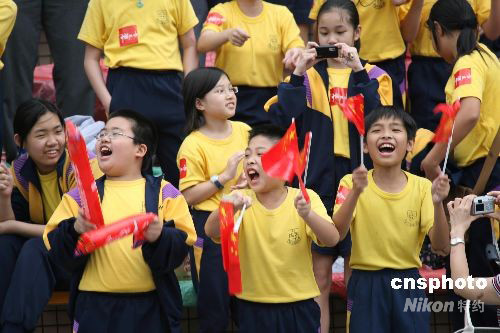 图为在沙田马场出席“万众欢腾迎圣火”大型社区庆祝活动的小朋友们。中新社发 武仲林 摄