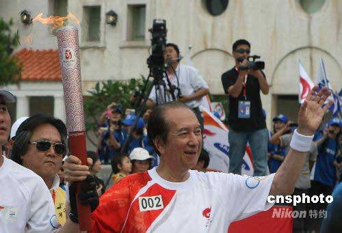 图为“赌王”何鸿燊跑第二棒。 中新社发 武仲林 摄