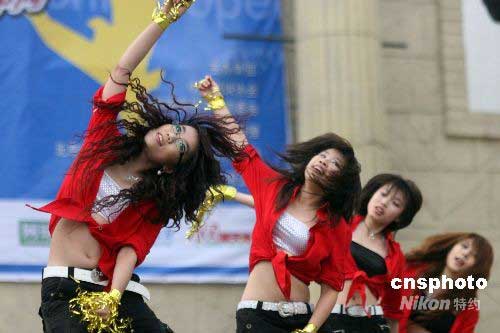 2008年“五一”期间, 2008“中网·网动中国”网球拉拉队团体复赛在北京欢乐谷举行。来自北京十几所高校的拉拉队选手参加了比赛,进入前三名的选手将取得2008中国网球公开赛拉拉队的资格。中新社发 陈晓根 摄
