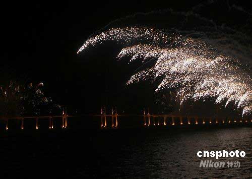 图:澳门举行烟花汇演庆祝奥运火炬传递