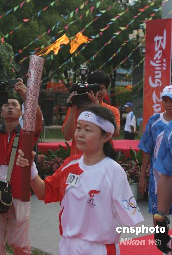 图:残奥会冠军传递五指山首棒奥运圣火 (2)