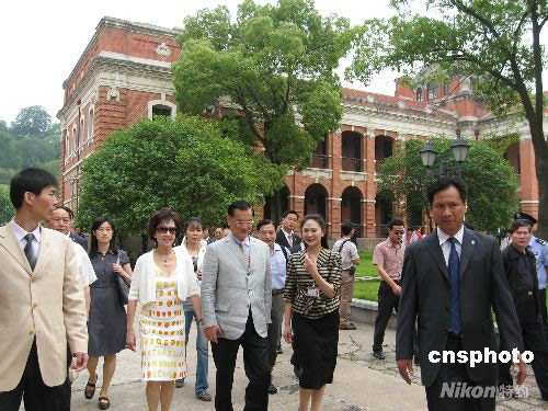 5月5日,中国国民党荣誉主席连战一行,参观访问了武昌辛亥革命博物馆。中国国民党副主席林丰正、海协常务副会长李炳才以及湖北省有关人员陪同参观访问。中新社发 艾启平 摄