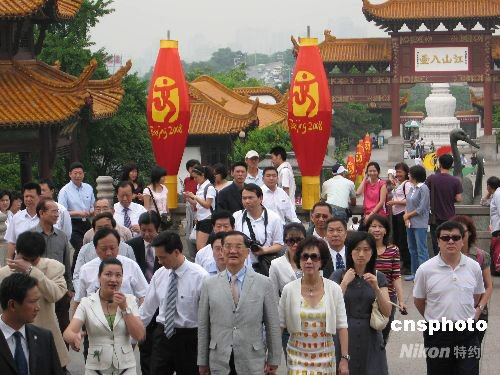 5月5日,中国国民党荣誉主席连战一行参观了武汉黄鹤楼。中新社发 艾启平 摄