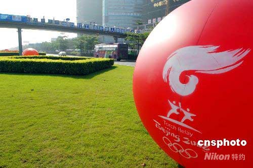 5月7日,奥运火炬接力传递(深圳站)准备就绪,期待奥运圣火到来。八日,由2008名奥运火炬手将穿越深圳进行41.6公里的接力传递。中新社发 陈文 摄