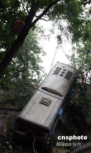 重庆发生公交车坠桥事故 险砸中轻轨工地(图)