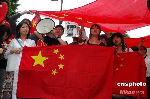 5月8日下午,正在日本访问的中国国家主席胡锦涛赴早稻田大学进行演讲,中国留学生自发组织欢迎胡锦涛主席。中新社发 侯宇 摄