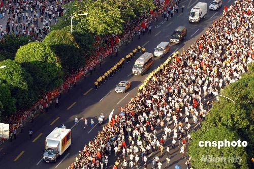 5月8日,奥运圣火在广东深圳传递,深圳百万市民在深南大道两旁追逐奥运火炬传递。