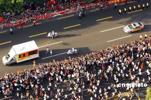 图:深圳百万市民追逐奥运火炬传递 (3)