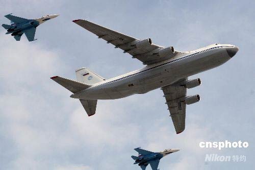 图为飞机编队飞临红场上空。当天俄军展示了30余种新式战机。中新社发 田冰 摄