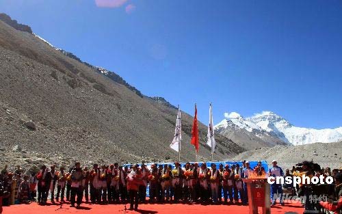 北京奥运火炬接力珠峰传递中国登山队凯旋庆祝仪式在珠峰大本营举行。中新社发 盛佳鹏 摄