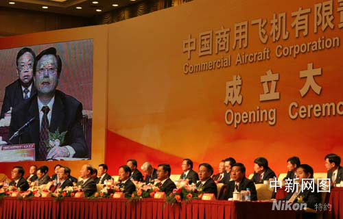 5月11日,国家控股的大型客机公司——中国商用飞机有限责任公司(简称中国商飞公司)在上海举行成立大会并正式揭牌,新公司将全力打造安全、经济、舒适、环保的大型客机,旨在让中国的大型客机早日飞上蓝天。孙自法 摄