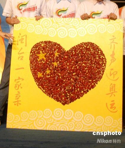 5月11日,台湾学子在展示为奥运会创作的祝福礼物。中新社发 张 斌 摄