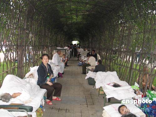 位于成都北郊的成都军区总医院接收了来自地震灾区的100多名伤员。在积极组织抢救的同时,医院搭建10余顶大型帐篷,将住院的1000多名患者全部安全转移。中新社发 朱琥 摄