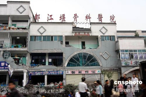 北京时间5月12日14时28分,在四川汶川县(北纬31度,东经103.4度)发生7.8级地震。都江堰市区多处房屋受到地震损坏。中新社发 黄荣 摄