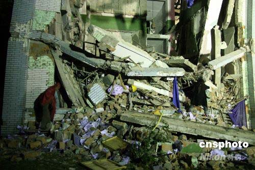 东方汽轮机厂子弟中学校舍仍掩埋约300学生。中新社发 郭晋嘉 摄