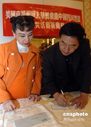 图:南加州侨领为四川地震灾区捐款(2)