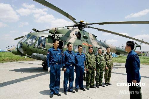 5月13日,南京军区空军某部两架直升机奉命分别飞赴四川地震灾区,执行救援、空投任务。其余机组成员已整装待发,随时等候上级命令飞往灾区。中新社发 贲道春 摄