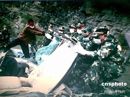 组图:武警官兵抗震救灾途中就展开救援抢险(2)