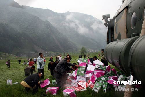组图:首架直升机成功降落汶川县城送去救灾物资