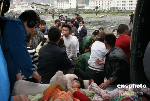 汶川首批40名重伤员被直升机运往成都救治