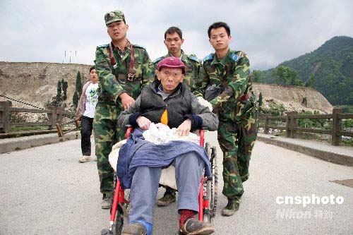 解放军官兵救助受灾民众。中新社发 黄家明 摄