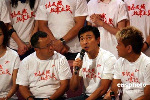五月十七日晚,香港无线电视举行《众志成城抗震救灾》大型筹款活动,呼吁全港市民踊跃募捐,赈济四川地震灾区。汪明荃、张学友、谭咏麟、郭富城、李克勤等众多演艺界人士出席。中新社发 武仲林 摄