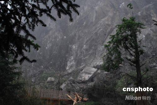 图为卧龙在地震后出现山体滑坡。中新社发 卧龙 摄