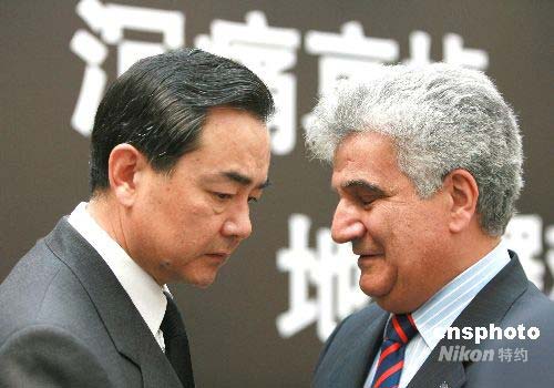 欧盟驻华大使塞日·安博前往吊唁时,与中国外交部副部长王毅握手致意,言辞悲切。中新社发 廖文静 摄