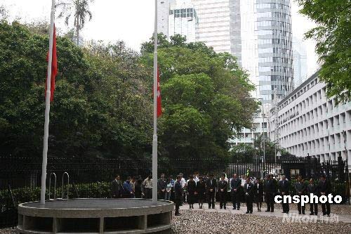 香港金紫荆广场降半旗向四川大地震死难者致哀