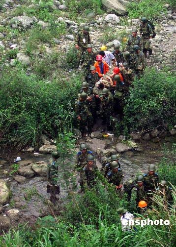 16日上午,师政治部主任高鹏带领救援突击队和医疗小分队172人,从绵竹市汉旺镇出发向重灾区天池乡几个村里运送救援物资,帮助群众撤离震区。11时左右,当部队行至高桥以西500米处,突然发生余震,导致大量山石从山顶倾斜而下,直接威胁着正在这个路段通过的群众。作训参谋祝红杰突然发现一个孩子瘫倒在石堆上,急忙上前抢抱他,孩子得救了,祝红杰却被乱石砸断左腿,当场倒地。作训参谋胡国才眼见一块乱石砸向老人,极力将老人推到一边,自己的头部却被乱石砸伤晕倒在地。同时,该团还有一名司务长和两名战士在救援中被泥石流砸伤…… 看到解放军为救灾区群众身负重伤,在现场的一些救灾志愿者迅即投入抢救部队官兵的行动中。运送途中山路险峻,他们拉一把、推一把,争先恐后出把力气。担负救援撤离群众任务的重庆市高新区人民医院的医护人员闻讯后,一边流着热泪,一边实施现场救护,为他们赢得了宝贵的救治时机……