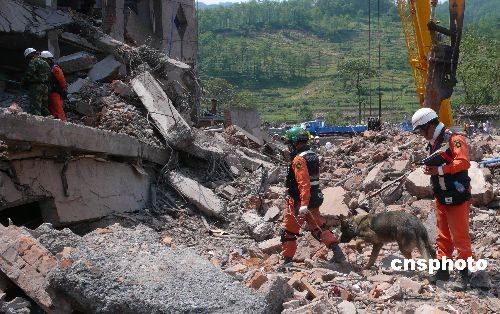 中韩两国救援队员四川什邡联手搜救被困者(3)