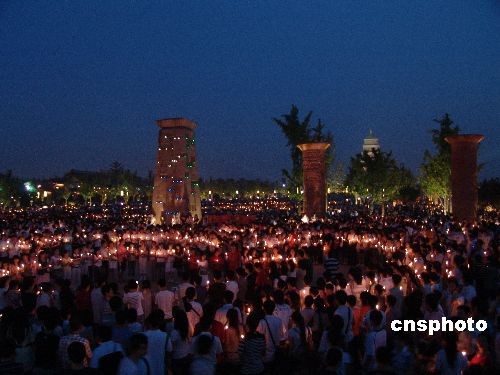 组图:万人齐聚大雁塔 烛光哀悼遇难者(2)