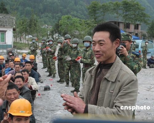 5月20日,好消息传来,在清平乡营救点,李佳的爸爸矿工李乐良被中国空降兵从绵竹县清平乡磷矿中营救出来。李乐良泪流满面,感谢子弟兵给了他和女儿第二次生命。