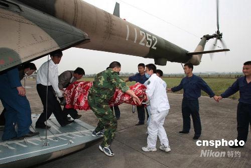图为藏族同胞仁增安全送到成都机场被医务人员接走。 中新社发 谭超 摄
