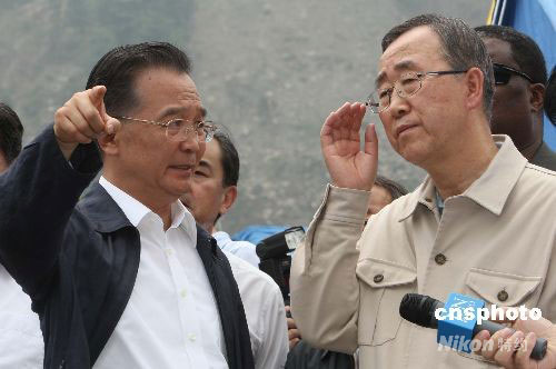 快讯:温家宝与联合国秘书长在汶川映秀举行会谈