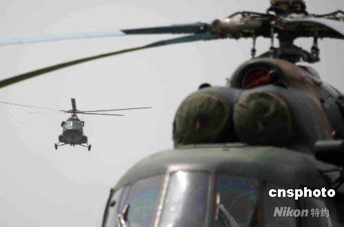 抗震救灾开始以来,中国军方直升机连续向灾区输送救灾物资。中新社发 曾宪平 摄