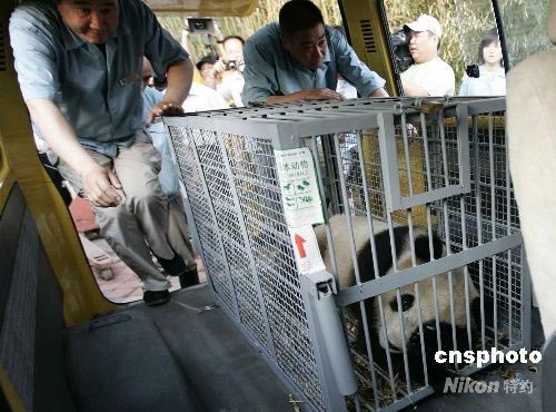 八只来自四川灾区的奥运大熊猫平安抵京 (2)