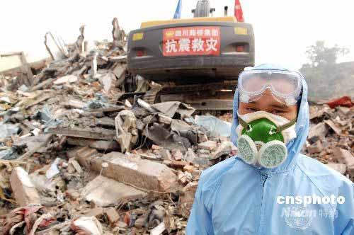 图:救灾部队在汶川映秀镇展开消毒防疫(2)