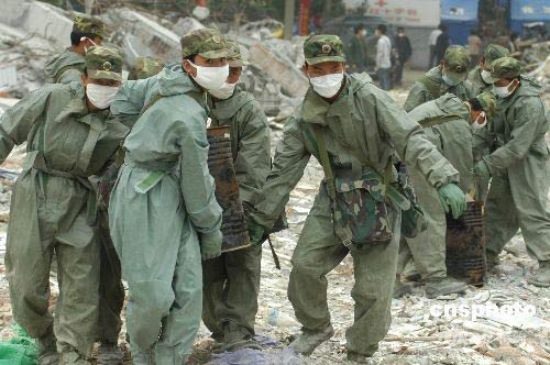 防化兵在搬运消毒干粉。中新社发 成和平 摄