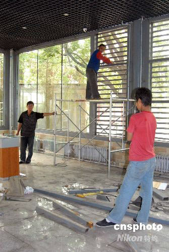 图为正在装修的北京动物园奥运大熊猫展览大厅。中新社发 罗小韵 摄