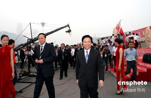 5月27日上午,奥运圣火在南京开始传递。图为江苏省委书记梁保华出席起跑仪式。中新社发 崔佳明 摄