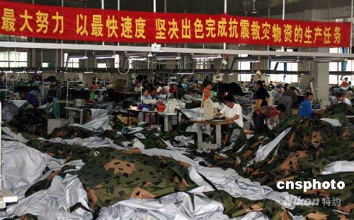 图:野营用品企业开足马力生产救灾帐篷(2)