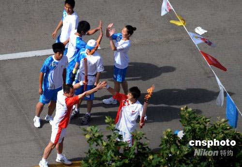 图:火炬手击掌示意