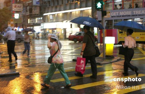 五月二十九日,香港天文台发布黄色暴雨警告,市民出行受到一定影响。中新社发 武仲林 摄