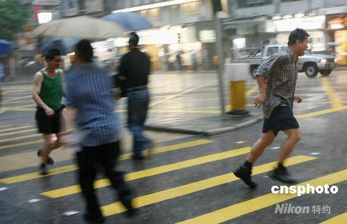 图:香港发布黄色暴雨警告(2)