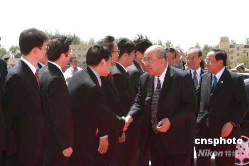 5月29日,中国国民党主席吴伯雄一行离开北京启程前往上海。中共中央国务院台湾事务办公室主任陈云林前往机场送行。中新社发 廖文静 摄