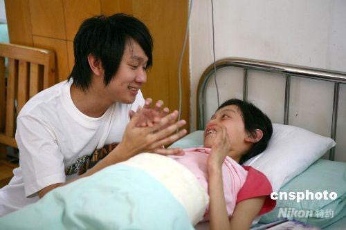 5月30日,香港艺人林俊杰来到四川省儿童医院,看望灾区的孩子们,并送上六一儿童节的礼物和问候。中新社发 黄荣 摄