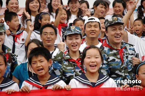 海军少将宋祖英赴四川绵竹和小学生过儿童节(图)