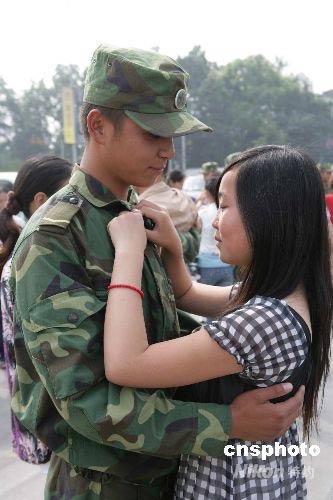 地爆连战士孙远刚和女友短暂团聚。中新社发 史成军 摄